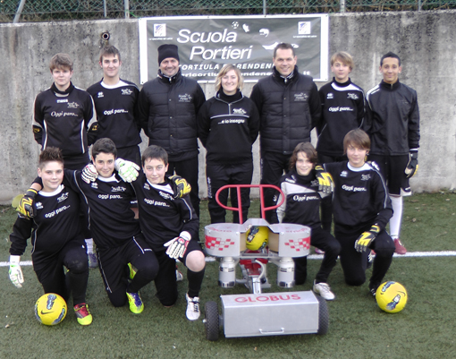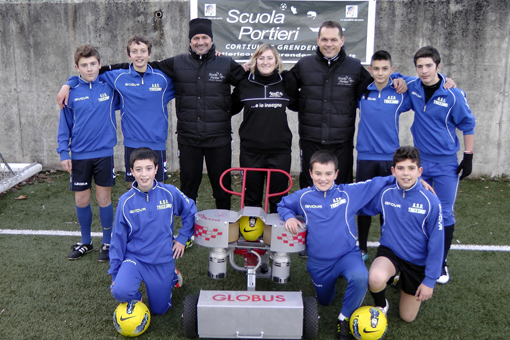 Foto dopo le riprese del video promo per la spara palloni della Globus Eurogoal: